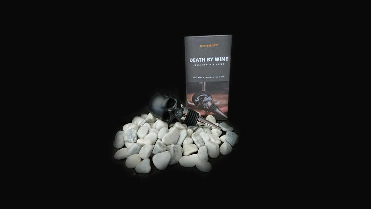 Der Weinkorken mit Totenkopf-Aufsatz.